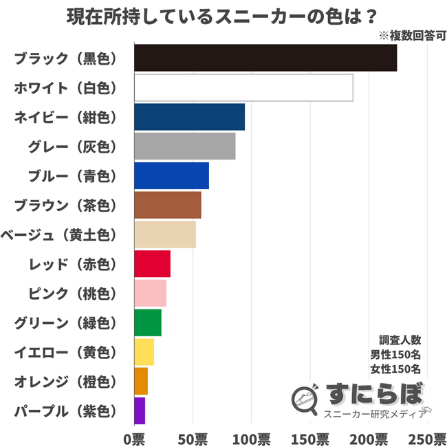 スニーカー研究メディア「すにらぼ」(https://sneakers-labo.com/)は、男女300名を対象にスニーカーのカラーに関するアンケート調査を実施しました。その結果を公表します。