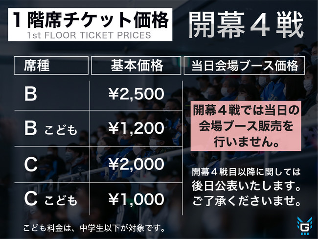 (上記 指定席B/C は、開幕4試合限定割引価格です)