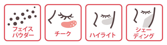 フェイスパウダー、チーク、ハイライト、シェーディングに使えます。