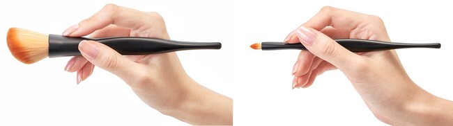 人間工学に基づいて設計されたハンドルが特徴で、ベースメイクに使えるフェイス用と、アイシャドウやリップに使えるポイント用の2種類をラインナップしました。