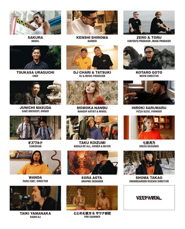 【出演メンバー】 KEEP IT REALのプロデューサーである rikumaru が東京を拠点にDJとして活動する中で知り合った親交のあるメンバーです。記念すべき第一弾の出演者には、Netflixオリジナルシリーズ「全裸監督 シーズン2」監督である後藤 孝太郎氏や吉本興業の芸人であるオズワルド、また、日本のバーバー文化を牽引する「MR.BROTHERS CUT CLUB」の城間健士氏等、幅広い業界で活躍する"今をトキメク総勢14組"の出演者の方々が参加しています。