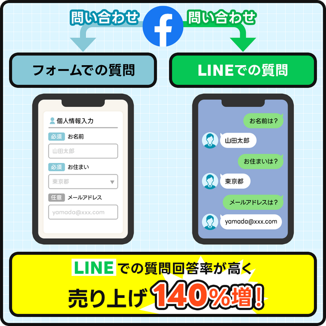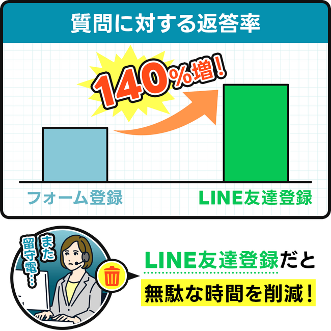 ■フォーム登録よりもLINE友達登録の方が、質問に対する返答率が140%増!
