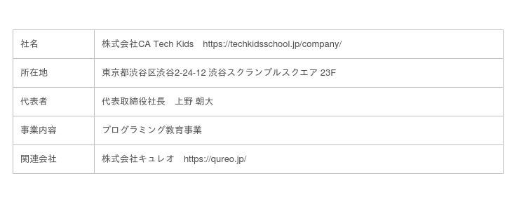 CA Tech Kidsは、2013年の設立以来、大都市から離島や地理的な制約がある地域まで全国各地の自治体と連携・協力し、プログラミング教育の機会創出と普及活動を行っております。2019年には、地域による教育格差の課題に取り組むべく、関連会社として「QUREO(キュレオ)プログラミング教室 https://qureo.jp/ 」の全国展開を開始し、現在は47都道府県に2,700教室以上を展開しています。