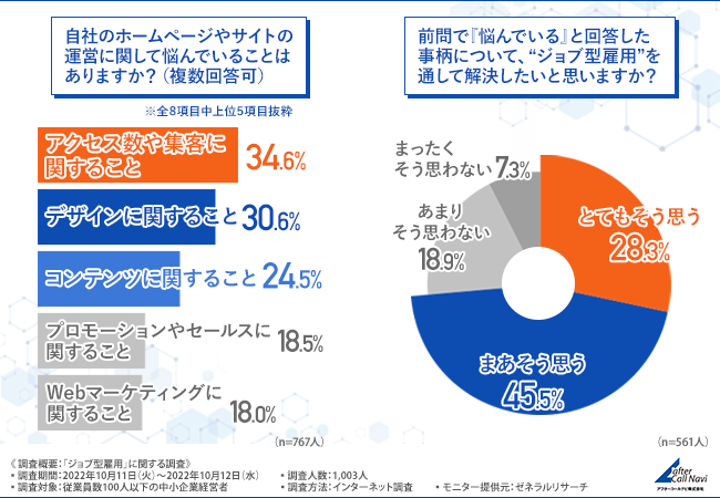 7割以上がホームページやサイト運営の悩みは『ジョブ型雇用』を通して解決したい