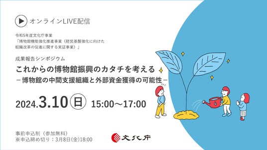 株式会社丹青研究所は、文化庁からの委託を受け、公益財団法人日本博物館協会、野村證券株式会社にご協力をいただき、今年度、「博物館機能強化推進事業」の中で、これからの博物館活動の充実と振興のための中間支援組織について検討するとともに、我が国では多数を占める公立博物館の寄付受け入れに係る構造的課題の調査研究を実施してまいりました。その成果を共有するため、2024年3月10日(日)にオンラインでシンポジウムを開催します。博物館関係者、自治体担当者をはじめとした皆さまのご参加をお待ちしております。