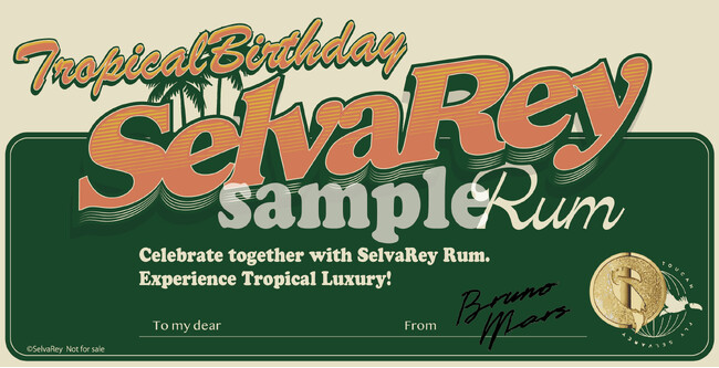 Bruno Mars(ブルーノ・マーズ)がオーナーのラムブランド「SelvaRey(セルバレイ)」スペシャルフラワーギフト:好評のうちに完売となった本ギフトが、Bruno Marsの誕生日を記念したTropical Birthdayセットとなって追加限定販売されます。販売開始は、Bruno Marsの誕生日である10月8日。Tropical Birthdayセットには、新たにTropical Birthdayカード1枚とSelvaReyステッカーセット(計4枚:4種類各1枚)が付属します。