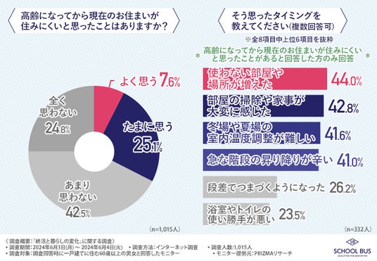 そこで今回、スクールバス空間設計株式会社(https://www.school-bus.jp/)は一戸建てに住む60代以上の男女に「終活と暮らしの変化」に関する調査を実施いたしました。