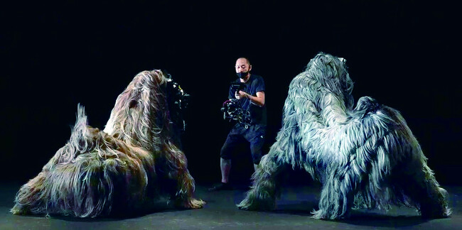 リアルタイムCGによるインタラクティブなAR(Augmented Reality)が、舞台上を動き回るワンカメラワークによって、ダイナミックな超越空間を生成します。観客は獅子と仁人によるパフォーマンスを見ながら、舞台上のスクリーンでリアルとARの合成映像を鑑賞します。