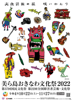 そんなうれしな便スタッフと比嘉司さんの思いが詰まったお菓子を、手に取った瞬間から喜んでもらいたい!とパッケージを考えている時に出会ったのが「13才の天才アーティストMIRACLE-KUN」です。ミラクルくんは2022年に県内で開催される「美ら島おきなわ文化祭2022」の公式ポスターをデザインしたアーティストです。このポスターを見て鳥肌が立つほど衝撃的で、調べてみたら、なんと!!13歳の少年が描いたということにさらに衝撃を受けました。もう絶対にミラクルくんにお願いしたい!と、熱烈アタックを試みたら、沖縄のためになれば。という涙が出るような嬉しいお返事をいただき、今回のプロジェクトが始動しました。
