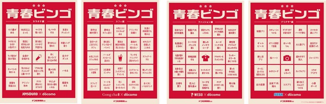 JOYSOUNDでは「カラオケあるある」、Gong chaでは「カフェあるある」、WEGOでは「ファッションあるある」、SEGAでは「プリクラあるある」が詰まったビンゴをそれぞれ制作。店頭やSNSにて配布を行います。