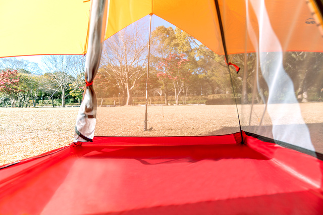 インナーテントは開け閉めができるファスナー式で、メッシュ素材付きなので防虫効果で快適に。虫の多い季節でもテント内で安心に過ごせます。