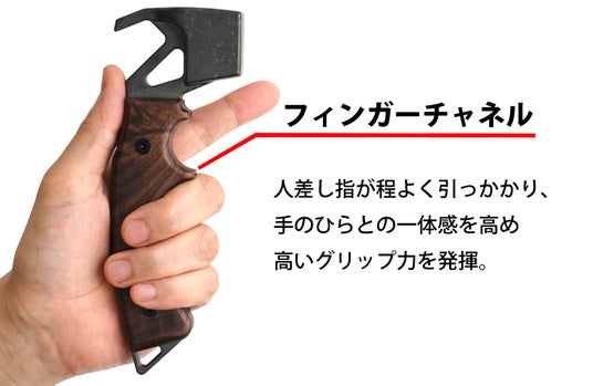 そこで、握力に依存せずに高いグリップ力を得られるよう、人差し指を引っ掛ける「フィンガーチャネル」を設けました。