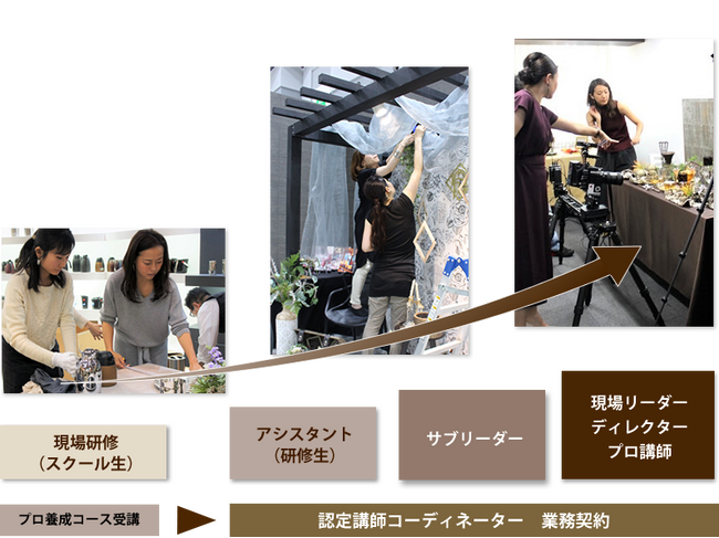机上の概論や実習体験のみならず、実際の現場やお仕事を体験できる「研修制度」を充実させ、プロ養成講座後は、「FSPJ認定契約制度」を設けており、活動実績や経験を積んでいただきながら、個々のステップアップを継続的に応援しております。