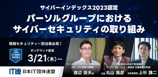 IT産業に関わる日本最大級のIT団体の連合体「一般社団法人 日本IT 団体連盟」(東京都港区、代表理事 兼 会長:川邊 健太郎)に設置されたサイバーセキュリティ委員会(委員長: 下村 正洋)の企業評価分科会(主査:丸山 満彦)は、サイバーインデックス企業調査2023の格付け認定企業を招いてオンデマンド配信のセミナーを開催します。