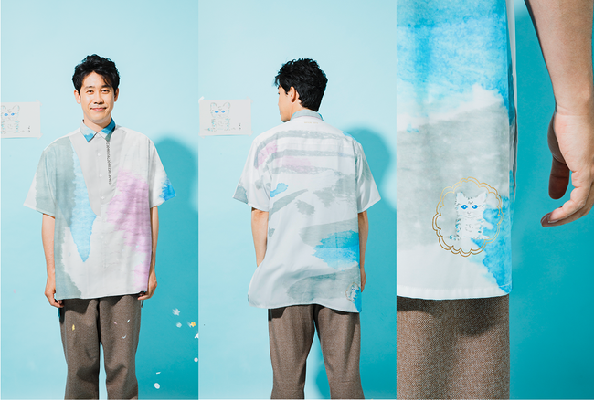 取り扱い商品は、森本さんがデザインし大泉が描いた絵や書がプリントされたアートシャツ3種、アートシャツのデザインを再構築したスカーフ3種、「大泉フィフティー曼荼羅」がフロントにプリントされたTシャツ2種の計8アイテム。オンラインショップキュープロ( https://cuepro.office-cue.com/ )での予約販売となります。