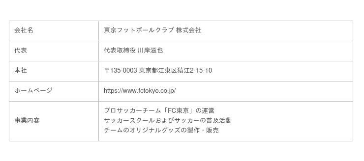 FC東京の掲げる「サッカーを通じて青少年の健全な心身の発達および都民の健康や喜びづくりに寄与し、スポーツ文化の振興ひいては地域社会の発展、国際交流・親善に貢献する」という理念に賛同し、また日本での人気スポーツの一種であるサッカーを応援するファンの人数の大きさ、そしてその成長性に着目し、FC東京を通じてスポーツ業界全体の支援・貢献の一環になることを願い、クラブスポンサー契約に至りました。