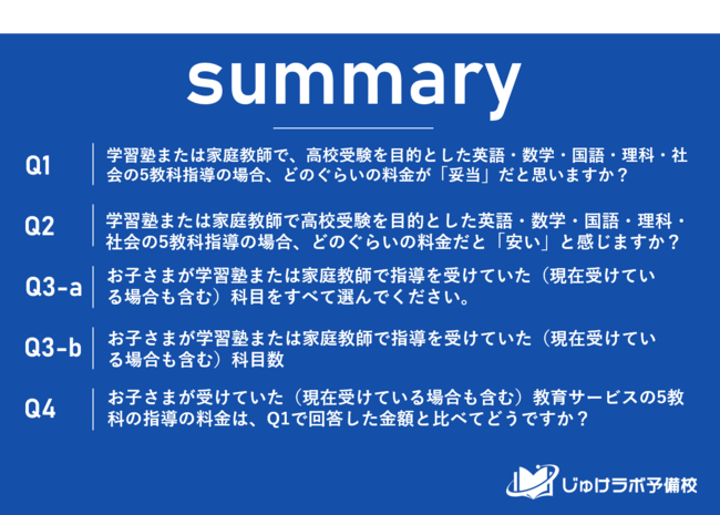 調査概要:中学生の塾・家庭教師の費用に関するアンケート