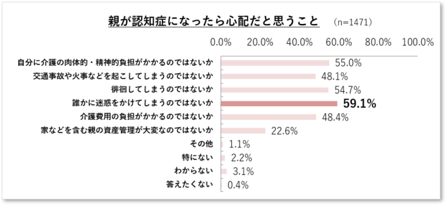親が認知症になったときの不安の内容は「誰かに迷惑をかけてしまうこと」が最多。