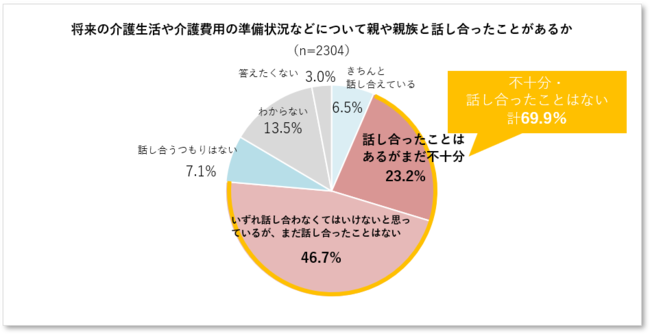 A. 「話し合ったことはあるが不十分」「まだ話し合ったことはない」合計で69.9%にのぼった。