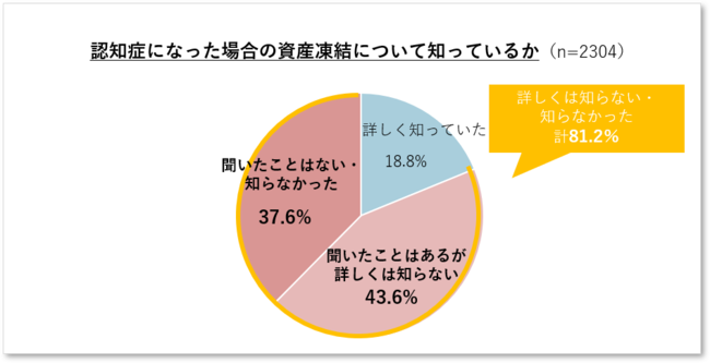 介護費用の財源は「親の資産で賄う」が約4割で最多。一方、認知症になった場合の 資産凍結については「詳しくは知らない」「知らない」が8割以上。