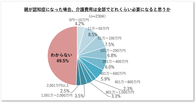 親の認知症介護にかかる費用について、約半数が「いくらかかるかわからない」。