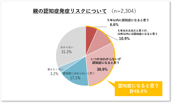 親の認知症発症リスクについて、約半数が「いつか認知症になると思う」。
