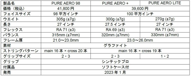 バボラVSジャパン株式会社(本社:東京都狛江市、カントリーマネージャー:梅原 充史)は、2022年8月に発売したテニスラケットの【PURE AERO】シリーズから「PURE AERO(ピュアアエロ)98」「PURE AERO +」「PURE AERO LITE」、そして新たに【PURE DRIVE】シリーズから「PURE DRIVE(ピュアドライブ)98」を発表。