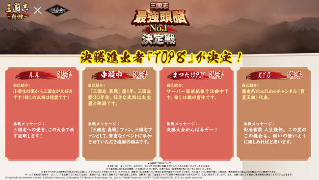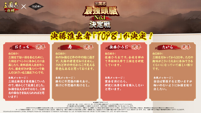 ◆決勝戦進出Top8が誕生!三国志最強頭脳は誰だ?!!