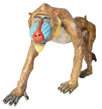 本濃研太の作品は、私たちの生活に身近な素材であり、リサイクルの優等生でもあるダンボール(※)で成形されており、さらにアクリル絵の具で表情豊かに着色されています。また、本展の作品の素材には、作家本人が集めた使用済みダンボールが使用されています。