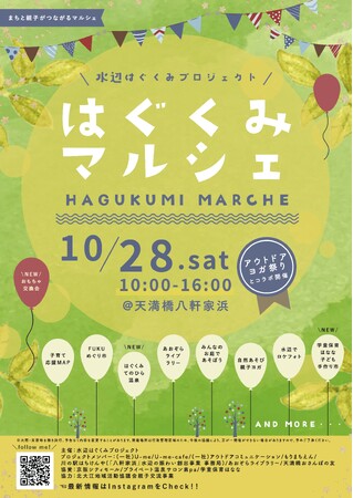 はぐくみマルシェは、乳児期から学童期の親子が楽しむことのできるマルシェです。出店だけでなく、子育てやまちの子育てサポーターによる展示、自然学習ワークショップ、子育てMAP展示などを行います。子育て世代が地域とつながり、子育てしやすいまちづくりについて考えるきっかけづくりを行うことを目的としています。
