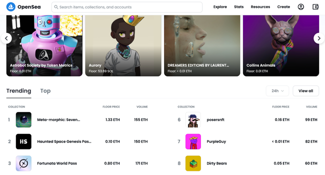前売りの完売は、「メタモルフィック」が現在の弱気市場でも大ヒットしていることを証明しています。 このミステリーブラインドボックスのプリセールは1分で完売し、総売上高は804ETH(100万ドル以上)となりました。予約販売終了後も需要が高まり、OpenSeaのトレンドリストで1位を獲得しました。