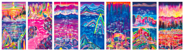 黄宇興氏の深く個性的で視覚的に印象的な芸術スタイルは、トップコレクターやブランドの注目を集めています。黄宇興氏は、彼の創作過程を反映し、保存する絵画で広く知られています。中国の伝統的な山水画を彷彿とさせるイメージを、抽象的ともいえる超モダンなネオンパレットで表現した彼の作品は、その独特のスタイルが幅広い層に支持されています。豊かな蛍光色が円錐形や楕円形の幾何学的な図像と出会い、黄宇興氏を新たな次元に押し上げる独特の風景を生み出しており、これらの創造的要素は「メタモルフィック」の重要なテーマとなっています。