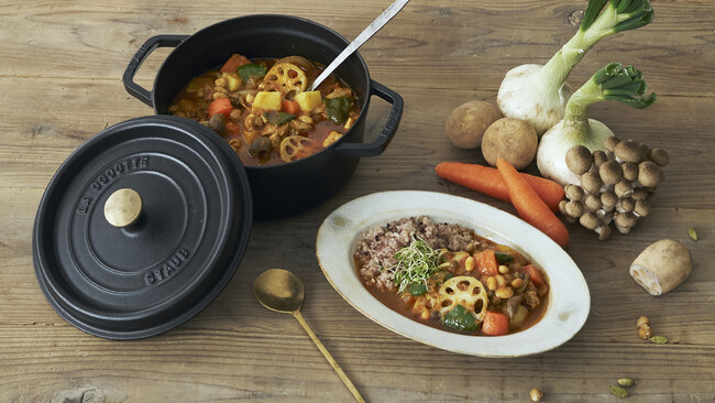 「食べるスキンケア」をテーマに体内の循環を整え、お肌と身体の健康を目指す冷凍宅配ミール「&meal」。現在、3日分・5日分・7日分とそれぞれ必要量に応じてオーダーできる、選べるミールセットを展開しておりますが、この度「チキンとたっぷり野菜のスープカレー+十六穀米」が新メニューとして加わります。このメニューは、先日大阪で開催したPOP-UPにおいて、カフェメニューの一つとして提供していたもので、当初はPOP-UPのみの限定提供を予定しておりましたが、ご来店いただいたお客様から大変ご好評をいただいたため、この度レギュラーメニューとして加えることにいたしました。 このスープカレーは7種のスパイスと生姜が香る本格スープカレーで、からだを芯から温めてくれます。具沢山の野菜と豆の優しい甘みが広がり、奥深い味わいに仕上げました。十六穀米と合わせてお召し上がりいただきます。