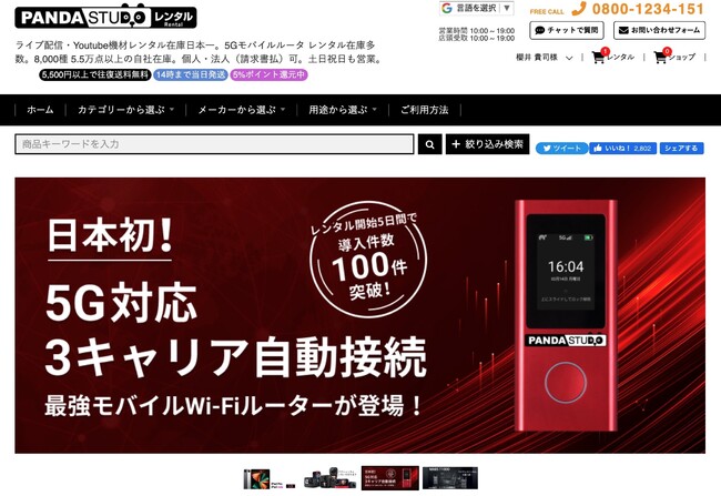 2016年よりサービス提供開始。動画撮影や中継配信など映像に特化した専門機材から家電まで、幅広いアイテムを取り揃えています。その数は8,000種類56,000点を超え、特にライブ配信・YouTube関連機材の在庫数は日本一を誇り、通信機器は最新の5Gモバイルルーターなどを豊富にご用意しています。