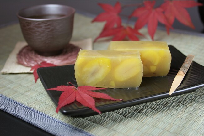 やわらかくまろやかに煮た粒栗と栗きんとんをふんだんに使い、長時間弱火でじっくり練り上げた、まさに栗づくしの羊羹です。