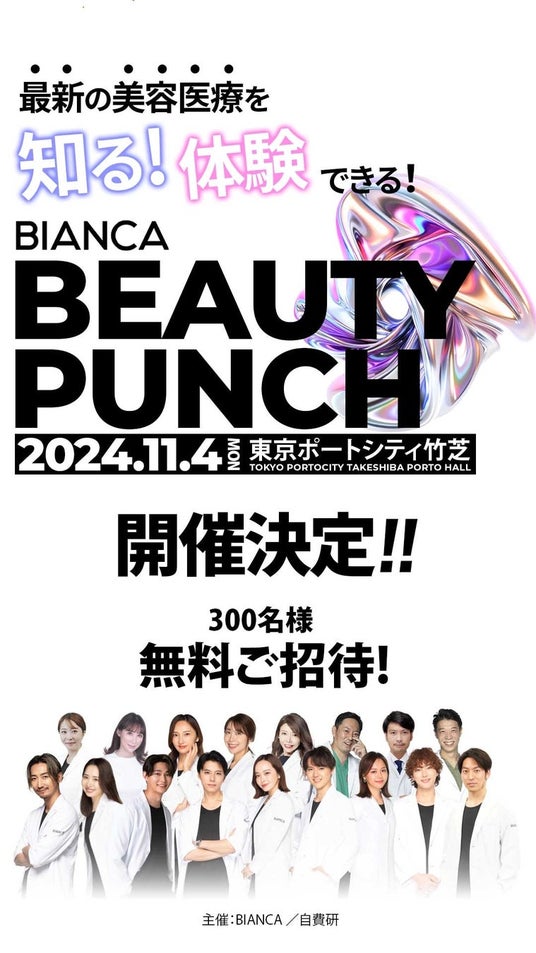 美容医療分野の最新トレンドを直接体験し、美容ドクターのこだわりと知識を深めることができる一大イベント「BIANCA BEAUTYPUNCH」が、2024年11月4日(月)に東京ポートシティ竹芝 ポートホールにて開催されます。