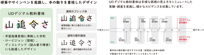 ロービジョン(弱視)研究の第一人者、慶應義塾大学の中野泰志教授による比較研究実験では、多様な弱視の見え方をシミュレートした実験に加え、弱視の高校生や成人、教員等200名以上を対象とした実験が実施されました。その結果、比較した従来の教科書体よりも可読性に優れていることが実証されています。