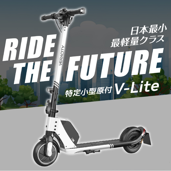 国内向けブランド「VERACITY」の新型モデル「V-Lite」は今年7月に法改正された特定小型原付に対応した日本最小/最軽量クラスで毎日のチョイ乗りに特化したデザイナーズ電動キックボードです。
