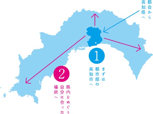 まずは比較的都市部の高知市に移住・滞在(1ステップ)。