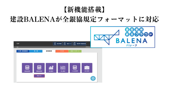 「銀行振り込みがたくさんあるから業務負担を減らしたい」といったお客様からのご要望にお応えして、一括で振り込み登録ができる全銀協規定フォーマットの機能を搭載しました。 今後もお客様が快適に建設BALENAを利用できるようにシステム開発を進めてまいります。