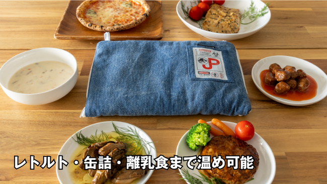 布自体が発熱する特許技術で実現した「WILLCOOK」。台風や大雨、地震などの自然災害時において、ライフラインが止まってしまった場合でも、温める機能を使用する事ができます。レトルトカレーやおにぎりを温めて、温かい食事をとることで、もしものときでも安心が得られます。