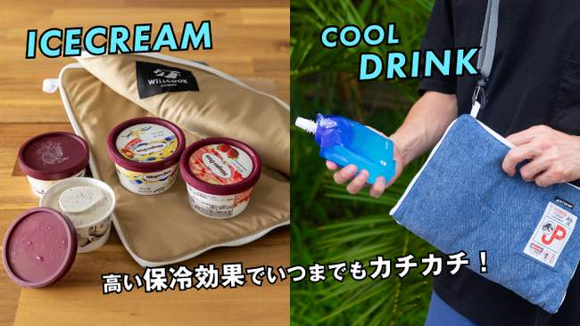 WILLCOOK JPには、高い保冷効果がある「高断熱素材」を採用。そのため、アイスクリーム・氷・冷凍したペットボトルやパウチドリンク、冷凍食品を保冷したまま運べるため、公園でのお散歩、ピクニック、登山やアウトドアにまで、保冷が必要なシーンで活用できます!