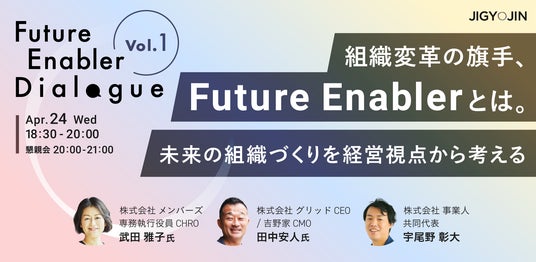 記念すべき第1回は、「組織変革の旗手、Future Enablerとは。未来の組織づくりを経営視点から考える」と題し、株式会社グリッド CEO / 吉野家CMO 田中安人氏、株式会社メンバーズ 専務執行役員CHRO 武田雅子氏(当社顧問)をお招きし、4月24日(水)にトークセッションイベントを開催いたします。皆様奮ってご応募・ご参加ください。