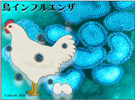 本技術の応用先の一例として、高病原性鳥インフルエンザウイルス(H5N1)に対する抗ウイルス活 性が確認 ※ できており、畜産・養鶏分野におけるバイオセキュリティ対策としても期待されます。その 作用はウイルス表面の脂質膜および膜タンパク質に直接作用することで感染性を失わせると推測されて おり、ウイルスの変異や増殖機構に依存しないため、変異株に対しても効果を示すことが予測されま す。本技術で用いる CHX遊離体ベースは、また、CHX遊離体ベースは水やアルコールに溶出しにく く、表面に長期残存する特性を有することから、消毒作業後や清掃後においても抗ウイルス機能を維持 できます。養鶏・畜産施設における鳥インフル対策をはじめ、医療・介護施設、食品工場、公共空間、 物流、動物関連施設など、【 感染リスクの高い環境に対する「見えない保険」】としての価値を提供で きます。さらに、本技術のベースになった元・技術(= Advanced MOD(R))によるオール無機・蓄光テ ープ、ワクモ対策の表面浮出しコーティング技術を利用した吸着フィルム、空気殺菌や環境改善照明技 術などの複数の技術を連携させることによる統合的な鳥インフルエンザ対策を構築中です。