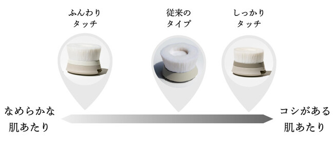 さらに「ふんわりタッチ」と「しっかりタッチ」という⽑の硬さが選べる2つのタイプをご用意。