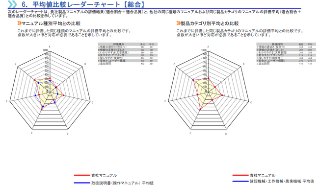マニュアル種別や製品カテゴリ平均とのベンチマーク比較を実現