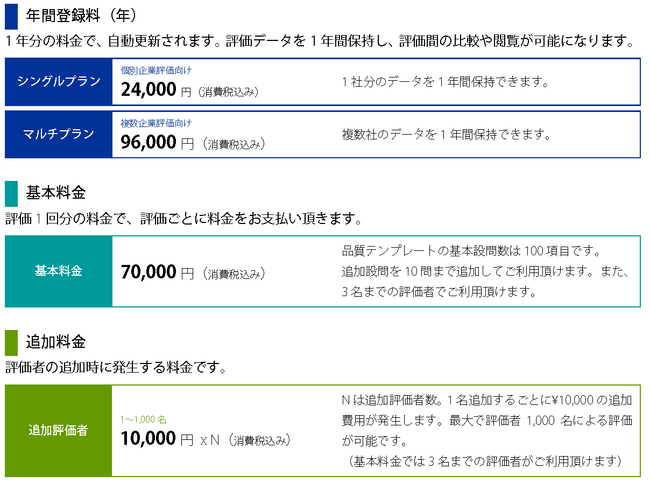 また、これらに加え、評価者の追加時に追加料金が発生致します。