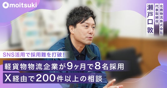 「X」に特化した採用支援を手掛ける株式会社Omoitsuki(本社:埼玉県さいたま市、代表取締役:幸義一、SNSネーム:せら課長)は、軽貨物物流の中小企業である北商物流(本社:東京都北区、代表取締役:瀬戸口敦)を支援し、SNS「X」を活用した革新的な採用戦略によって人材採用に成功した事例を発表いたします。