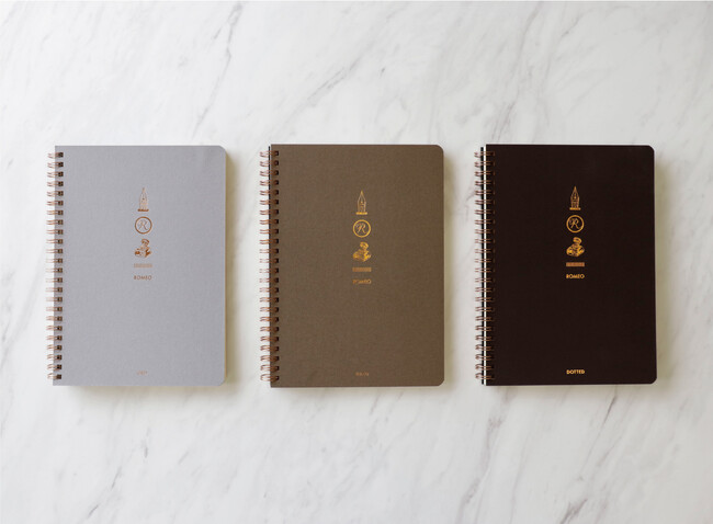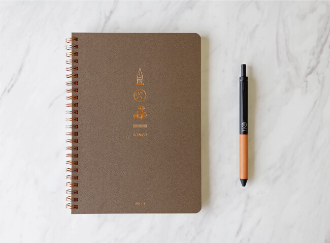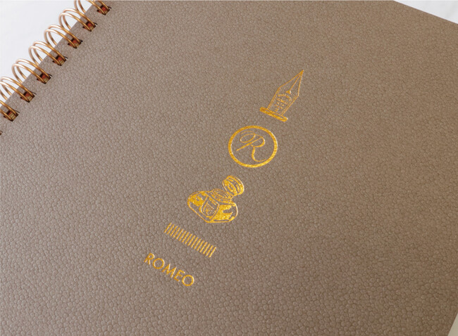 本革をイメージした高級感のある表紙にカッパーカラーのリングと精緻な箔プリントが優美な輝きを放つ「ROMEO Wリングノート」は、なめらかで艶のある用紙が特徴。筆記用に開発された用紙がペンの力を引き出し、快適な筆記体験をもたらします。先行販売中の伊東屋限定カラー・グレー(方眼罫)とブラウン(ドット罫)とも調和するエレガントなセピア色の新作は、様々なシーンで活躍するオーソドックスな横罫。洗練されたステイショナリーが、日常の筆記シーンをここちよくサポートします。