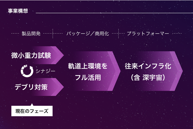 この調達により、当社は微小重力下の実験装置(Micro-ISS)及びデブリ対策装置の開発を進め、軌道利活用の促進に資する技術開発を更に進める計画です。軌道上での微小重力下での実験を可能とする小型衛星等の開発、事前の搭載により搭載先宇宙機のデブリ化を防止する装置の開発といった取り組みを積極的に推進します。